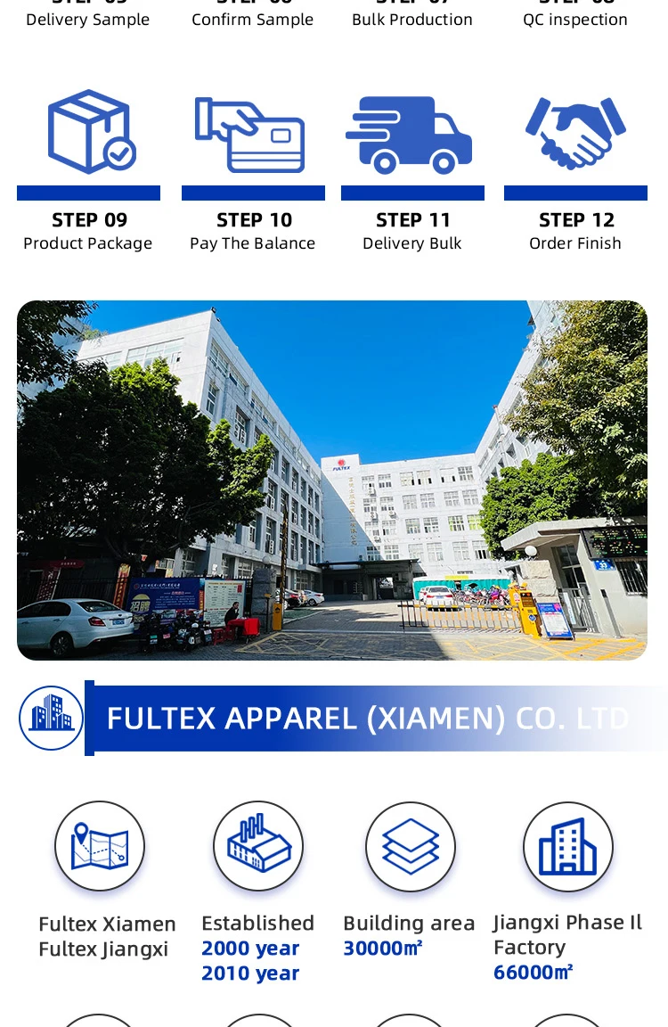Fultex Apparel (Xiamen) . was established in 1999, located in Xiamen, the famous beautiful seaport in southeast China. We are a professional and exporter specialized in outdoor wear, skiwear, sportswear, casual wear and so on. Our products are mainly exported to the EU and the USA with annual output of 3,000,000pcs/sets. All our products passed EU and US testing standards of ITS, SGS, STR, TUV or BV. Our customers include Sportmaster, Northland, Camel Kids, Regatta, Craghoppers, Alpine Pro, Tchibo, S.Oliver, Strellson, Erima,Color Kids, Original Marine etc… We have over 1000 skilled workers from two fully owned factories in Xiamen and Jiangxi that enable us to produce exquisite garments in substantial quantities. Our is running with high quality and specialized supply-chain management, advanced imported equipment and technological process, perfect quality supervision system and prompt sample development. In 2006, we passed ISO9001:2000 Quality Management System certification. In order to fulfill the requirements of customer, both of our factories passed BSCI (Business Social Compliance Initiative) audit by TUV in 2009. We're also carrying out JIT (Just In Time) production system, by which we can reduce much wastage, increased production output and keep stable quality for every single piece of garment. Maximize customer's satisfaction and profits with superb quality & service is our value of life. We always try to serve every customer since the beginning of our business. Contact us today to learn more about how we can keep your sourcing on schedule.