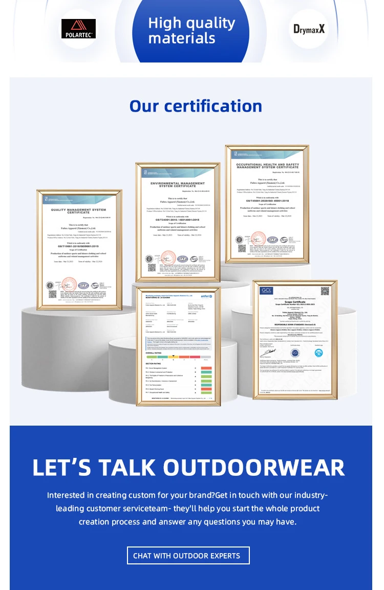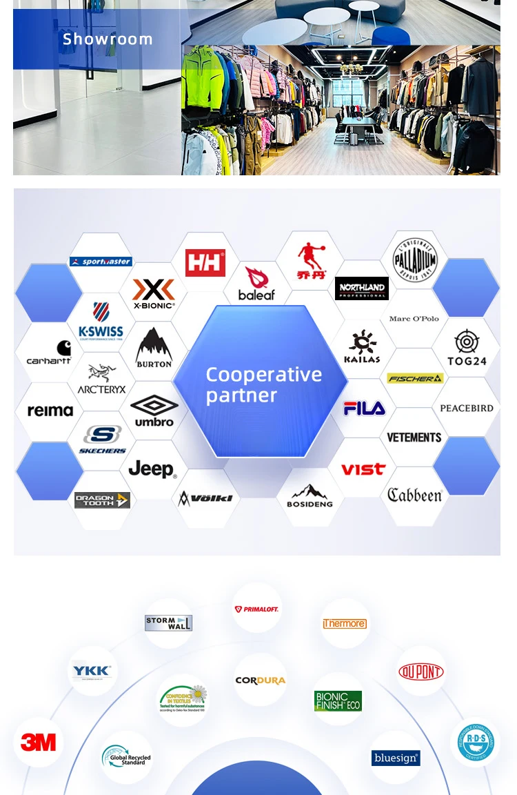 We have more than 20 years experience,and a prodessional gartment ,our products all export to euro,American,austrial and Asia ect.,Our cooperated clients have sportmaster,reima,Brax,Craft,X-Bionic,Camel active,Cabben,Fila,Anta,Volkl,NYC…….