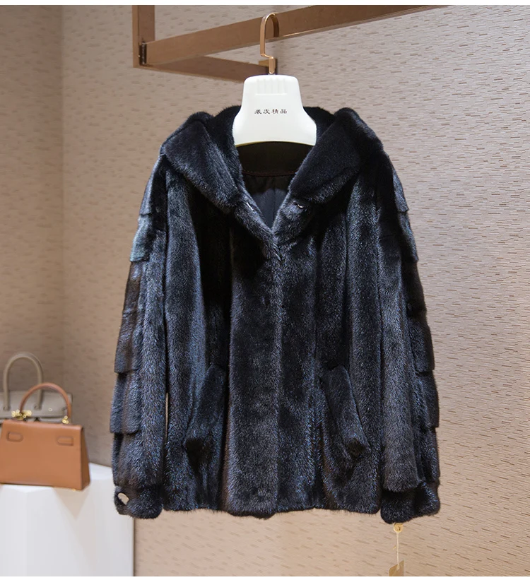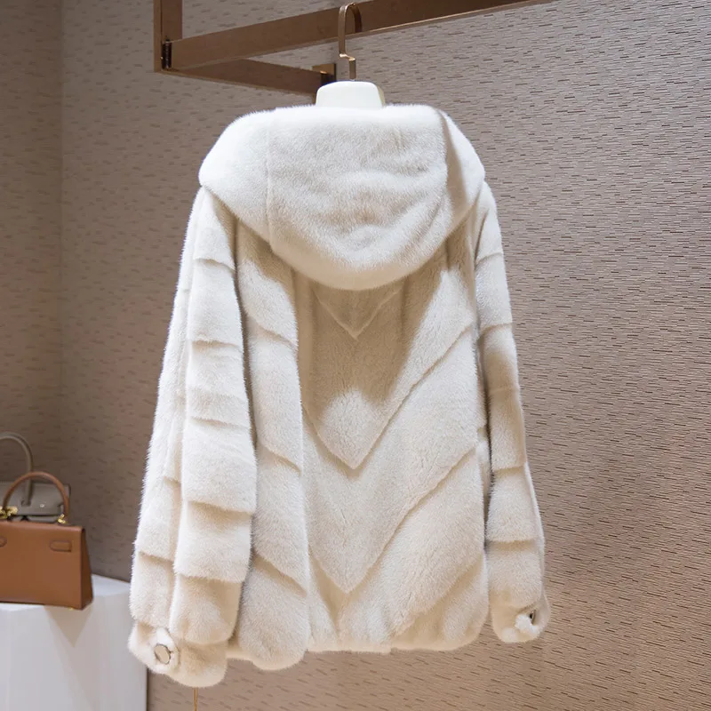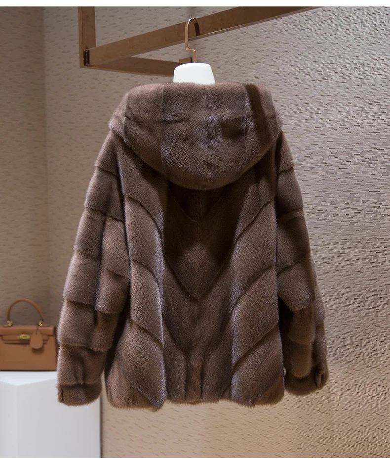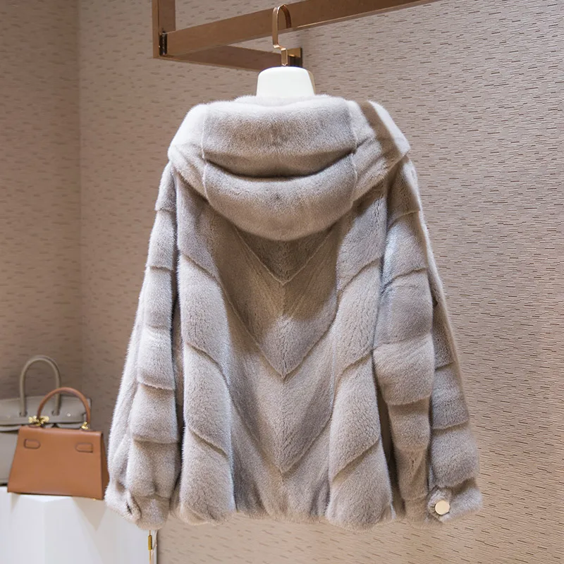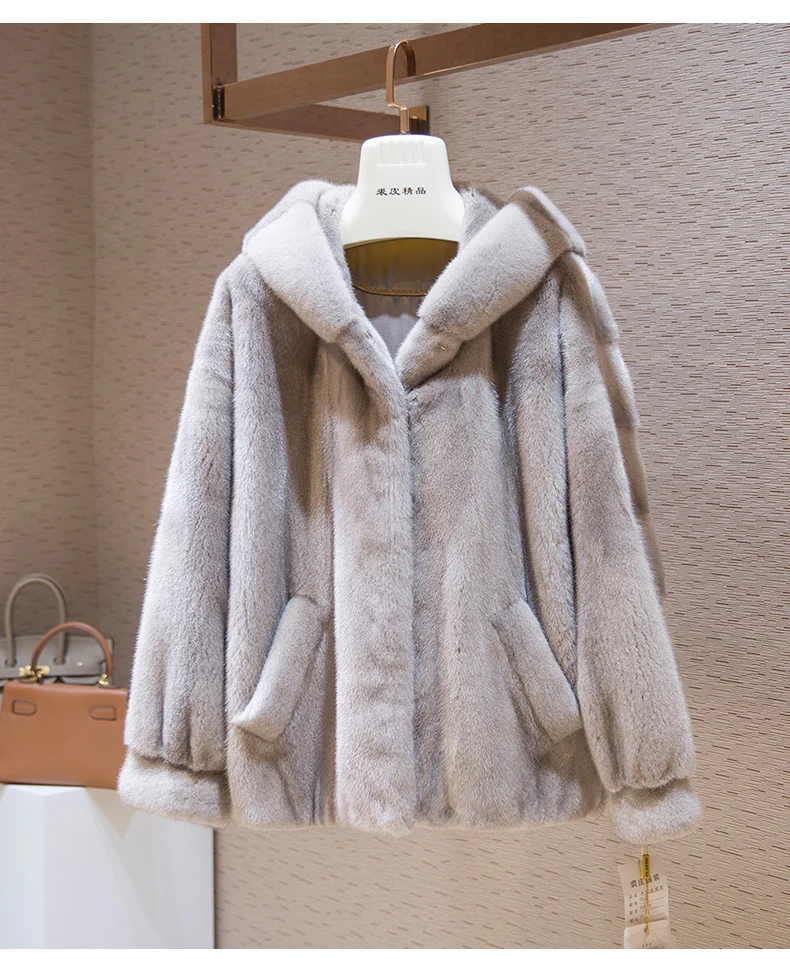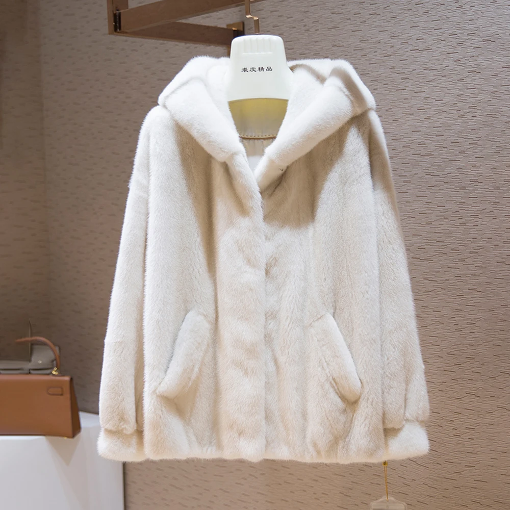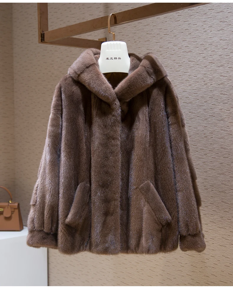 Luxury Imported Casual Winter Windproof Loose Fit Short Real Mink Fur Outerwear Hooded Velvet Coat for Women