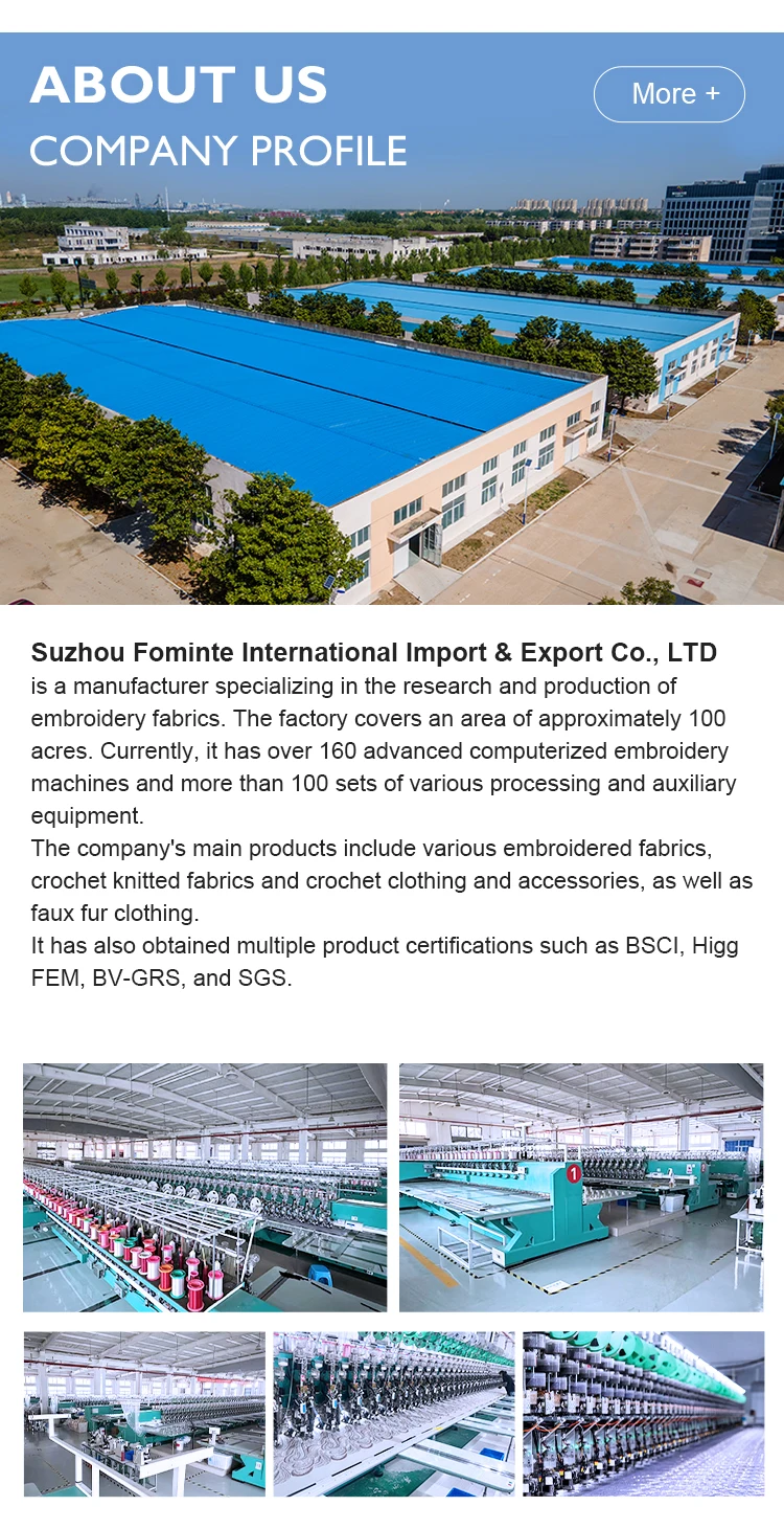 2:What are your main products? Our main products include 2 items. 1Fabric: Including bead embroidery, embroidered fabrics and lace fabrics, etc. 2Garments: Including crochet clothing , Faux Fur Coat, Suede Coat, Suede Jacket,etc.