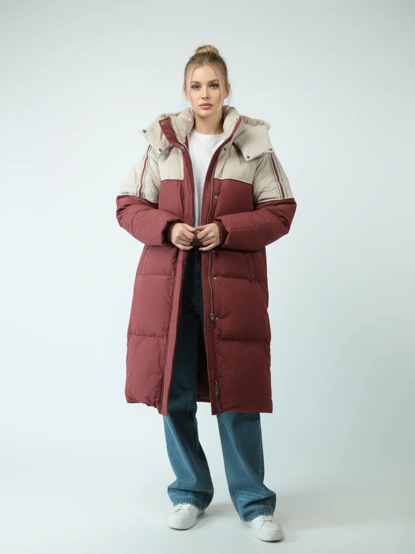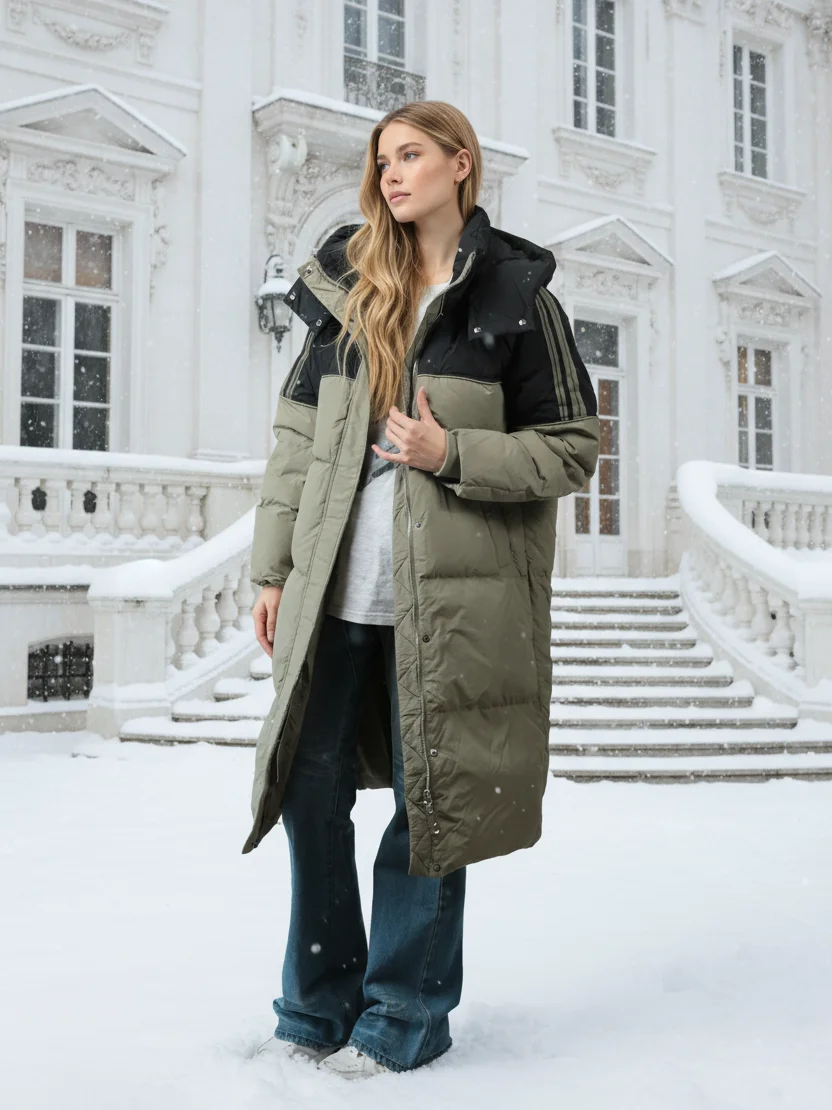 Stylish Aesthetics, Stand Out in the Crowd The upper and lower color – blocking design is a stroke of genius. It injects a strong fashion vibe into the down jacket, making it unique and reducing the chance of same style, having the same style as others). This color scheme is also perfect for couples to match outfits, allowing you and your partner to showcase stylish coordination in winter. The combination of a hood and a windproof stand – up collar not only enhances warmth by blocking cold air but also elevates the overall look, making it both warm and visually appealing.