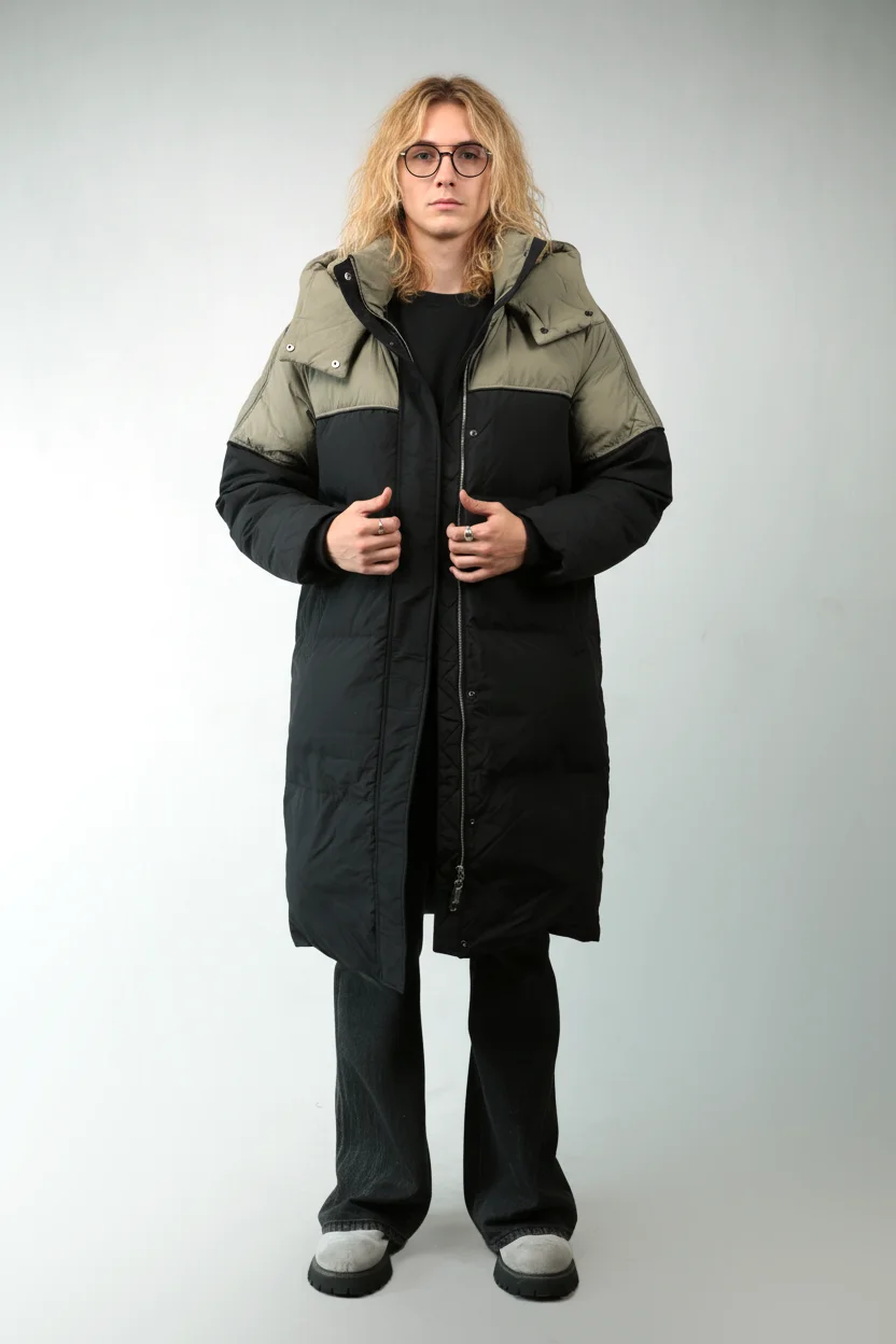 Unisex Long Puffer Coat Long Sleeve Quilted Winter Down Coats Hooded Parka Jacket
